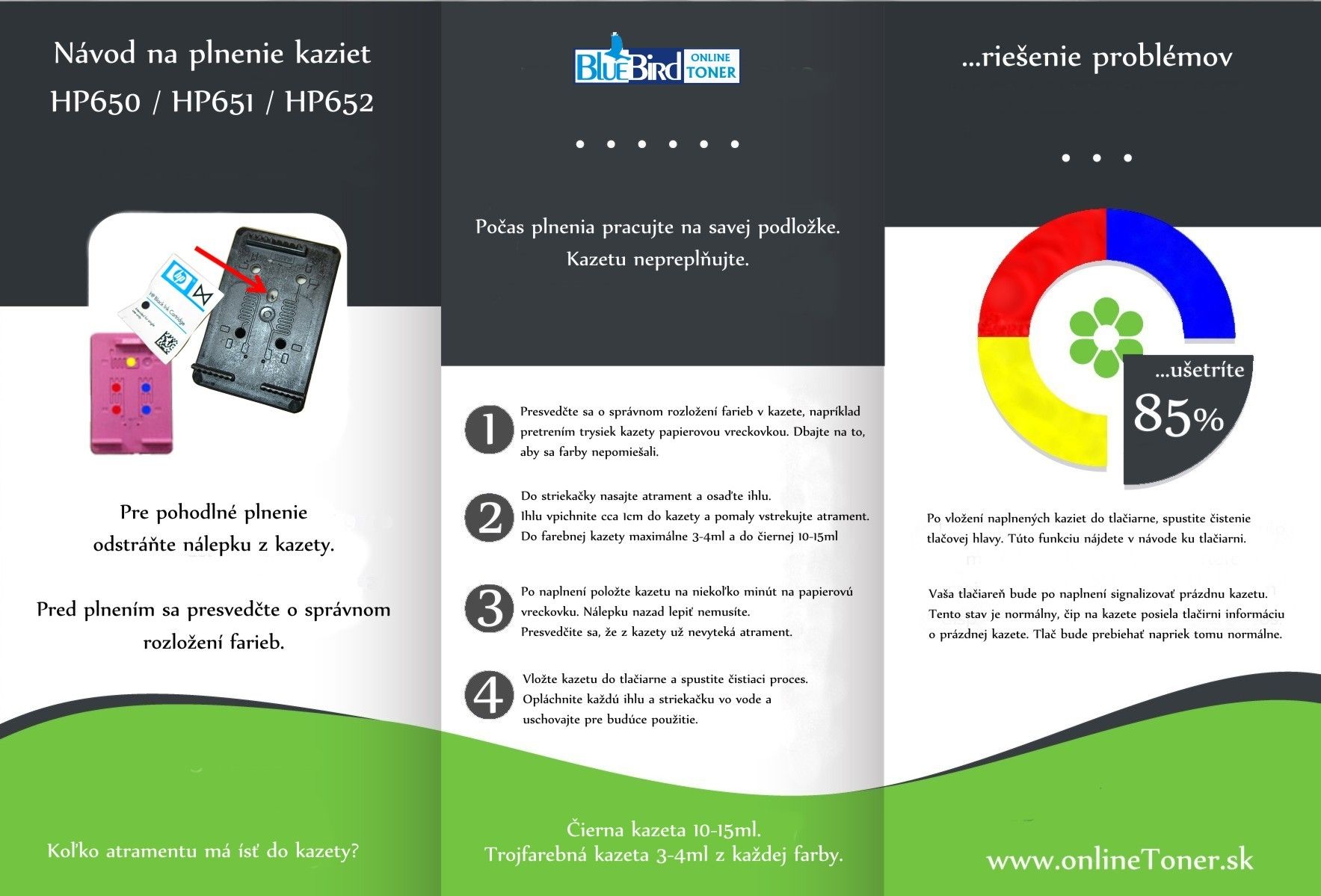 Uvedené množstvo atramentu stačí na cca 25 plnení kaziet HP650