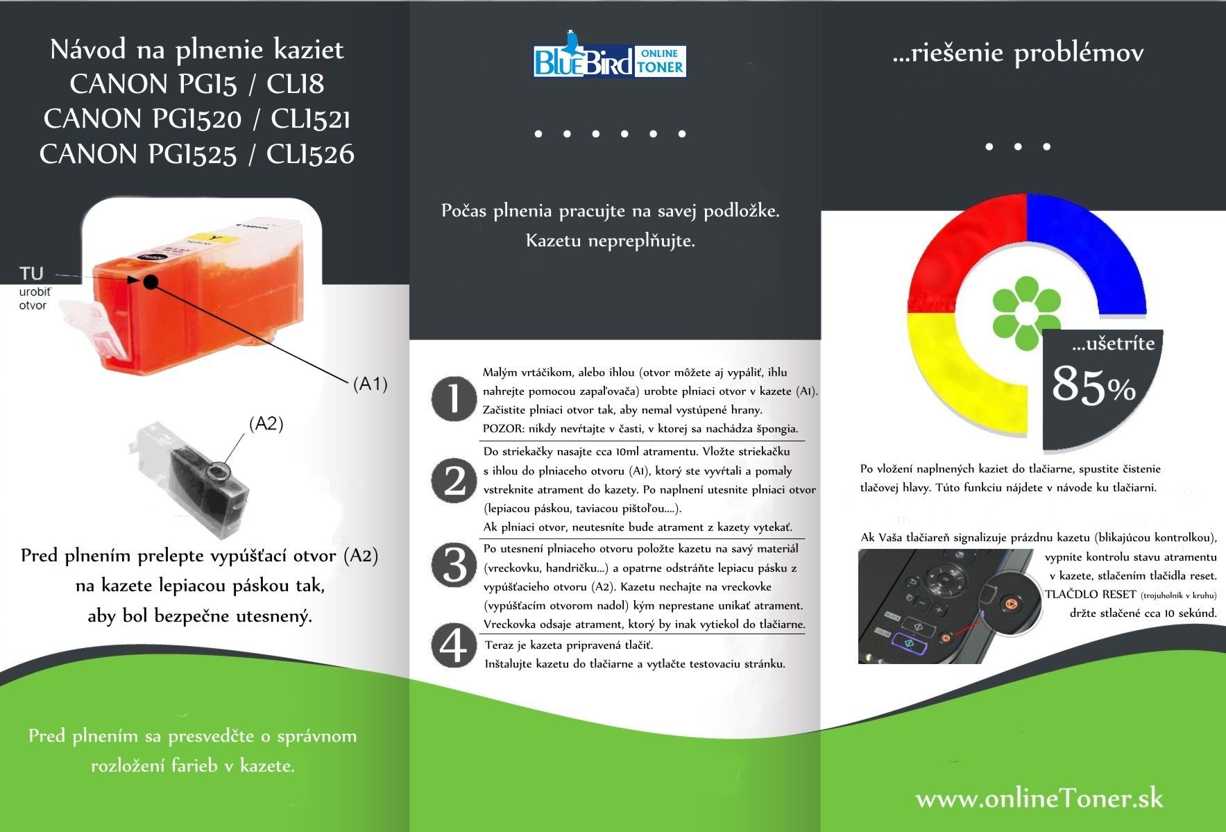 Multipack obsahuje atrament prekazety: PGI525 Bk-100ml, CLI526B-50ml, CLI526C-50ml,CLI526M-50ml, CLI526Y-50ml