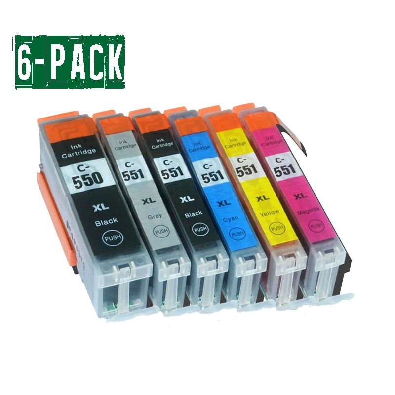 Balenie 6 ks atramentových kaziet kompatibilných s Canon PGI 550XL / CLI 551XL s čipom.