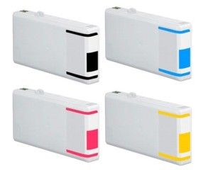 Balenie obsahuje kazety kompatibilné s: EPSON T7011 (62ml) čierna, EPSON T7012 (32ml) modrá, EPSON T7013 (32ml) červená a EPSON T7014 (32ml) žltá.