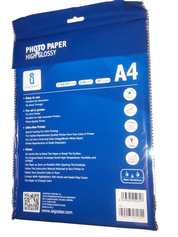 Kvalitný lesklý fotopapier určený pre atramentové tlačiarne. Papier je vhodný na tlač archívnych fotografii s mnohoročnou životnosťou výtlačku. Tlač na papieri zasychá ihneď po vytlačení. Vodeodolný.